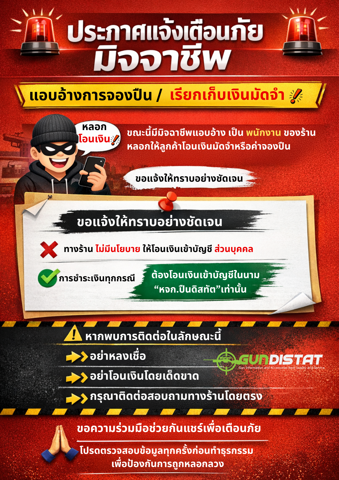 ** แจ้งขอนัดรับปืนล่วงหน้าได้ที่ 0615327700 สายด่วน หรือ @gundistat