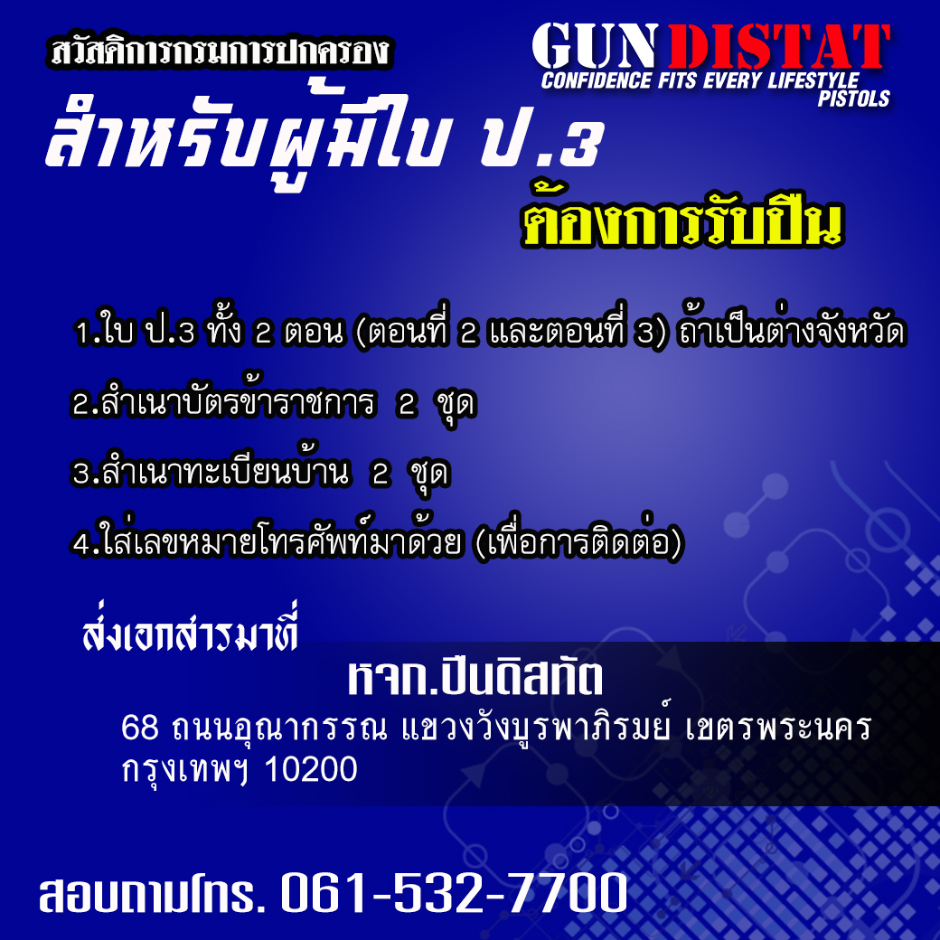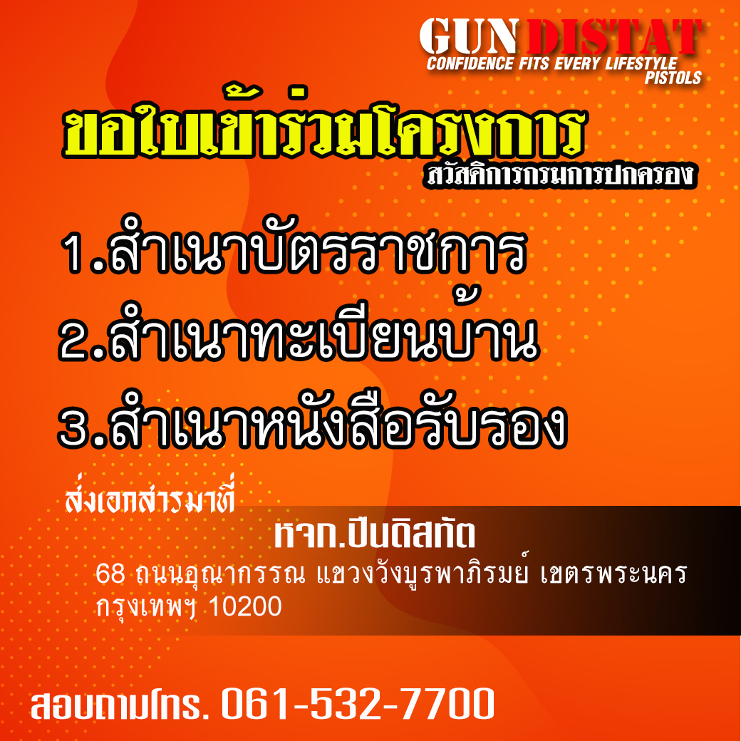 ** แจ้งขอนัดรับปืนล่วงหน้าได้ที่ 0615327700 สายด่วน หรือ @gundistat